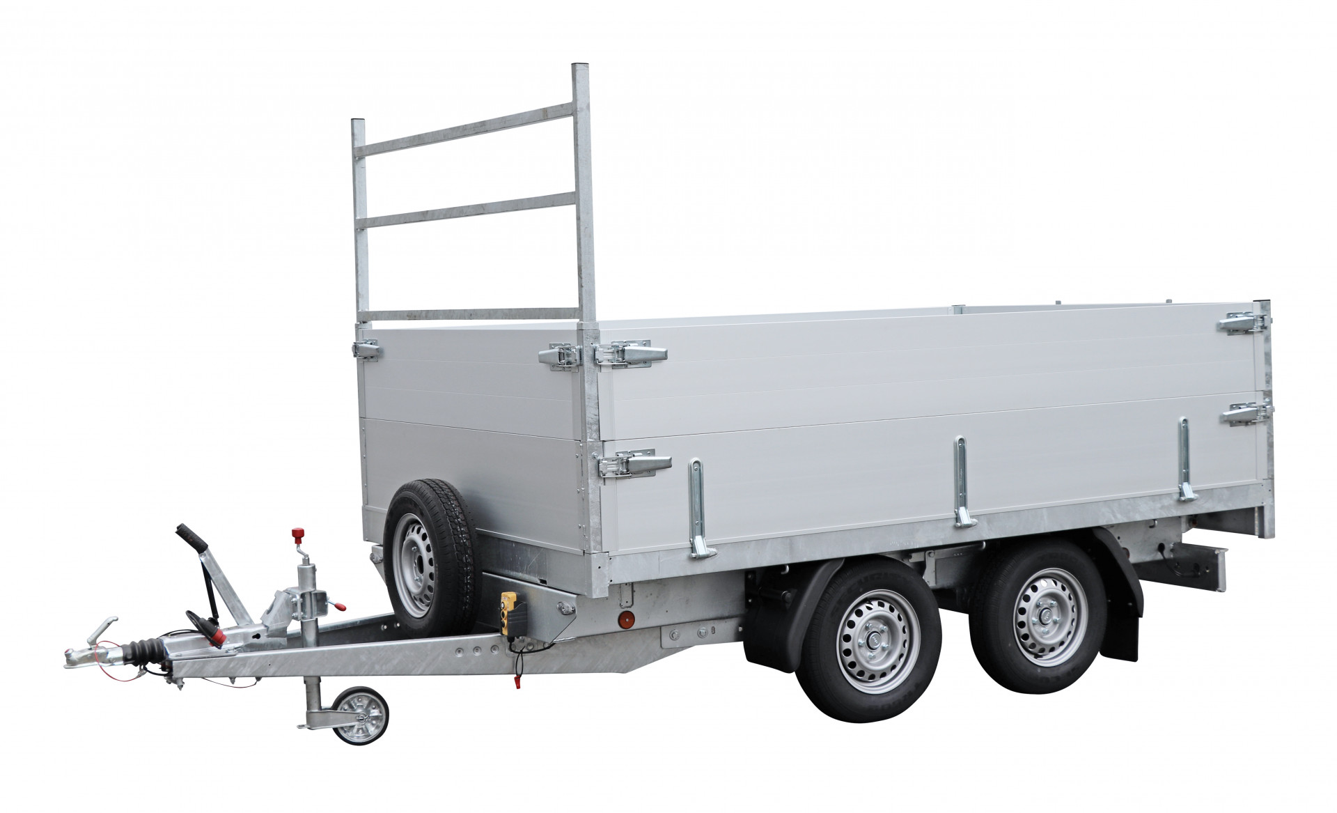 Bodem: multiplex 15mm met staalplaat (optie vr 1500kg) & Aluminium zijborden 350mm, 3-zijden scharnierend