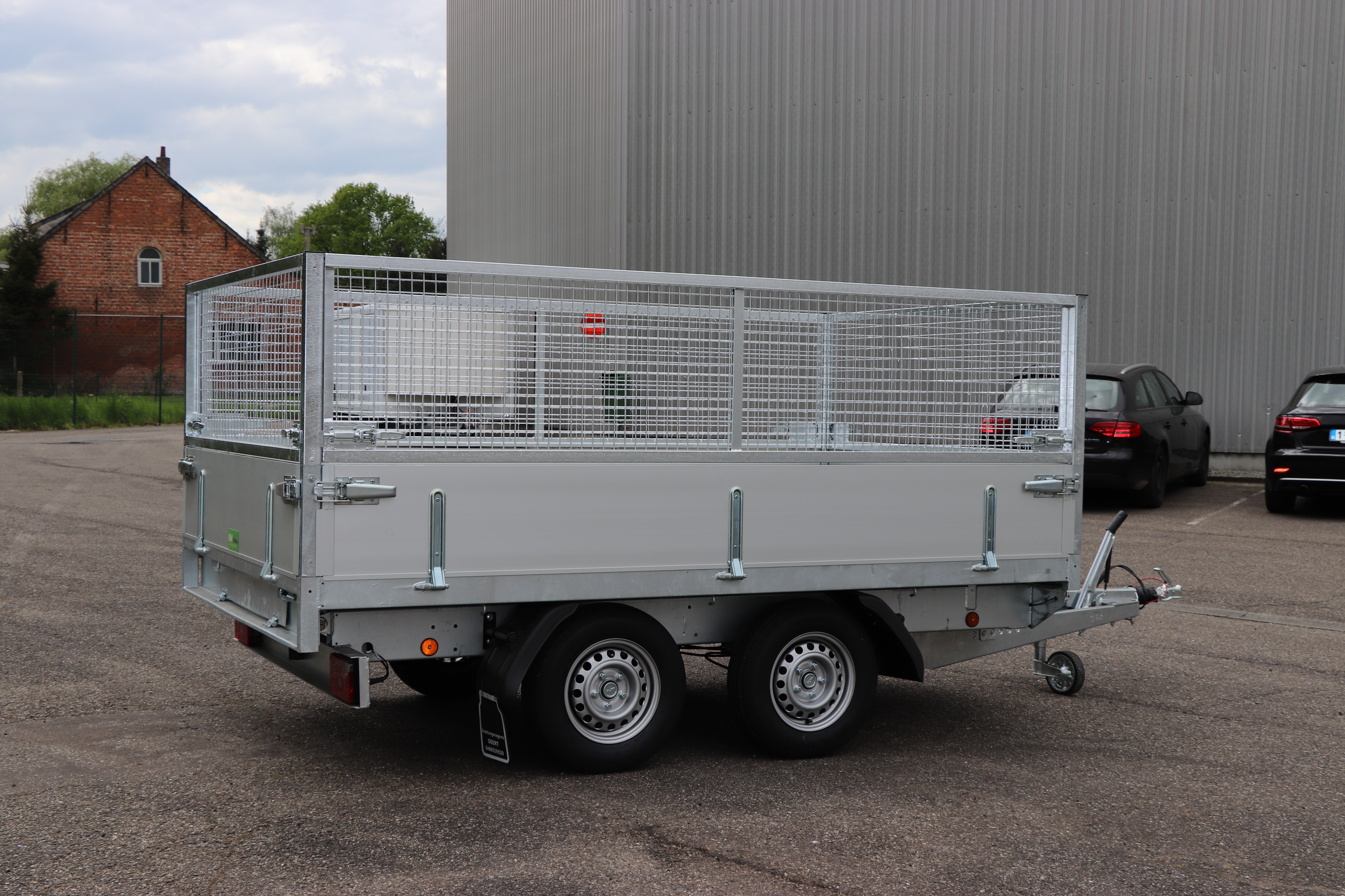- Opbouw: Draadnet 650mm hoog voor plateau en kipbak aanhangwagen: 4500x2000: 809.92€+btw= 980€.