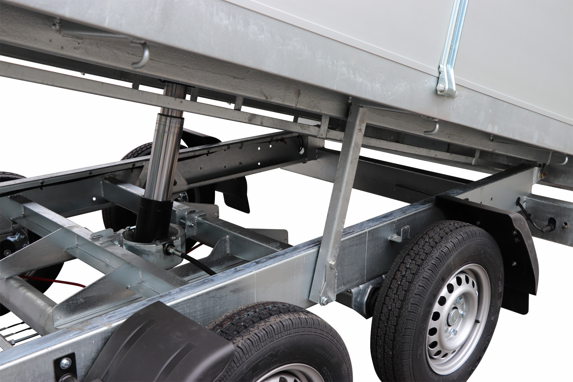 Geremde KIPbak aanhangwagen: Dubbel as met wielen onder de laadvloer.
