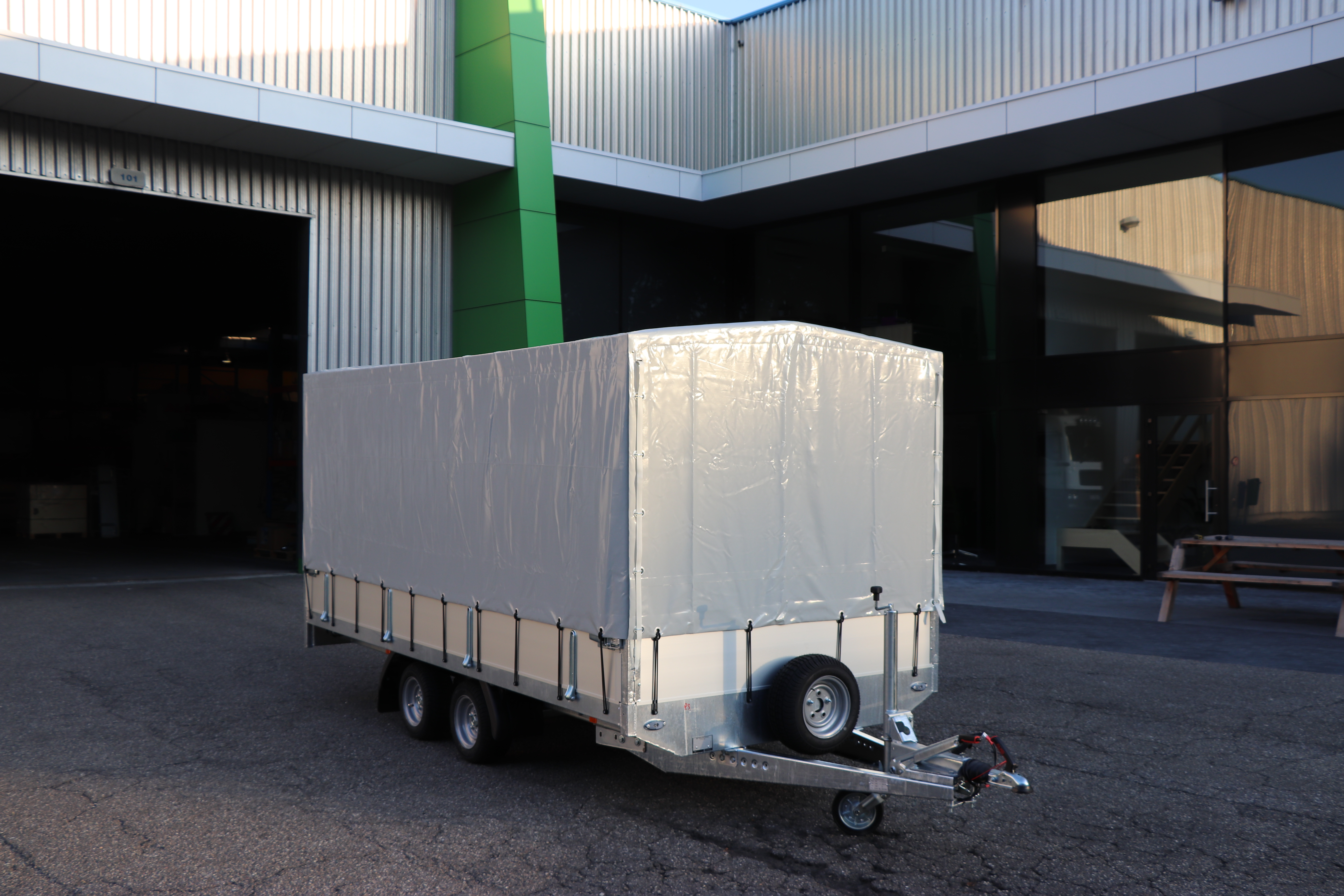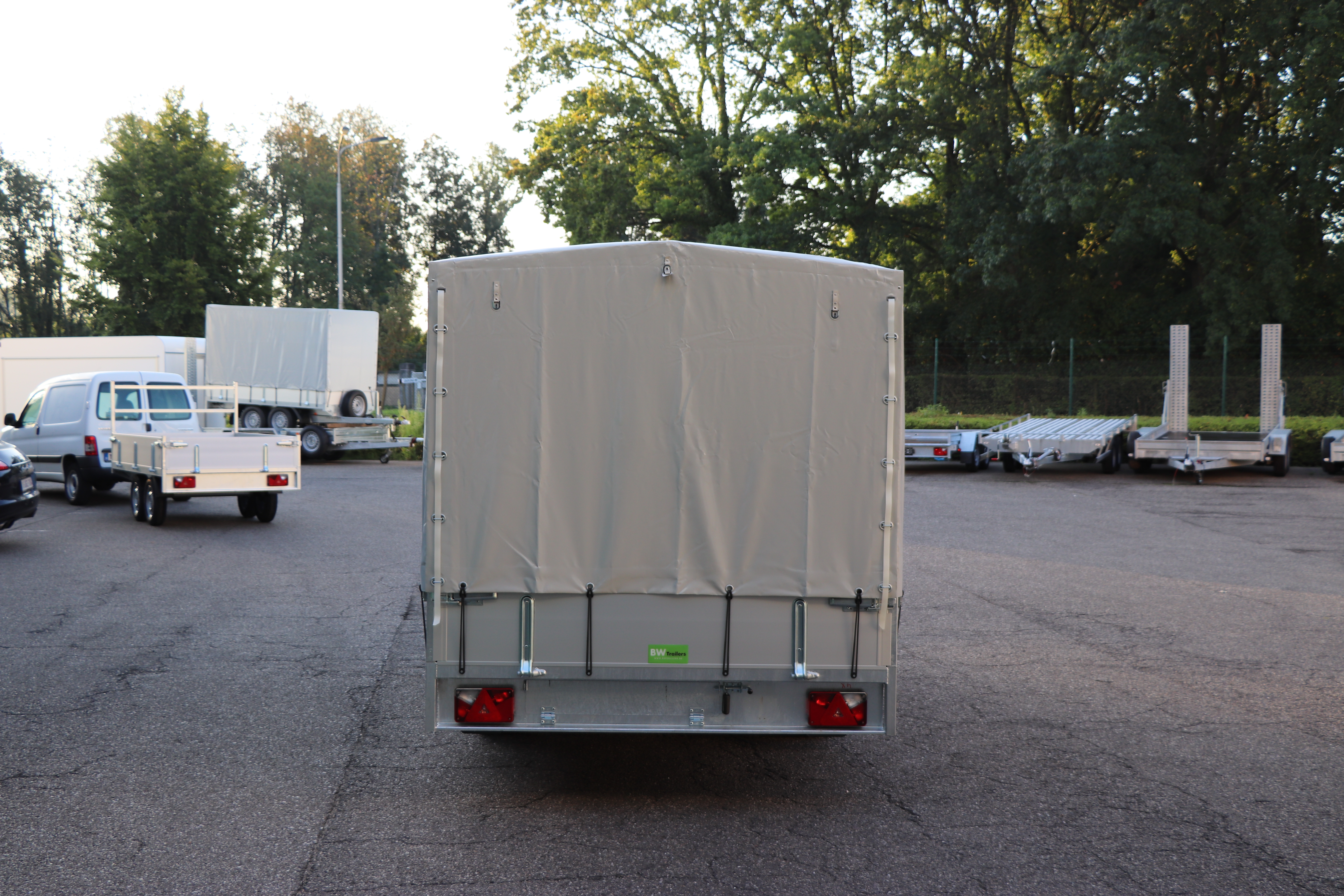- Zeil: Grijs vlakzeil geremde plateau en kipbak aanhangwagen 4000x2000 Prijs: 301.65€+btw= 365€.