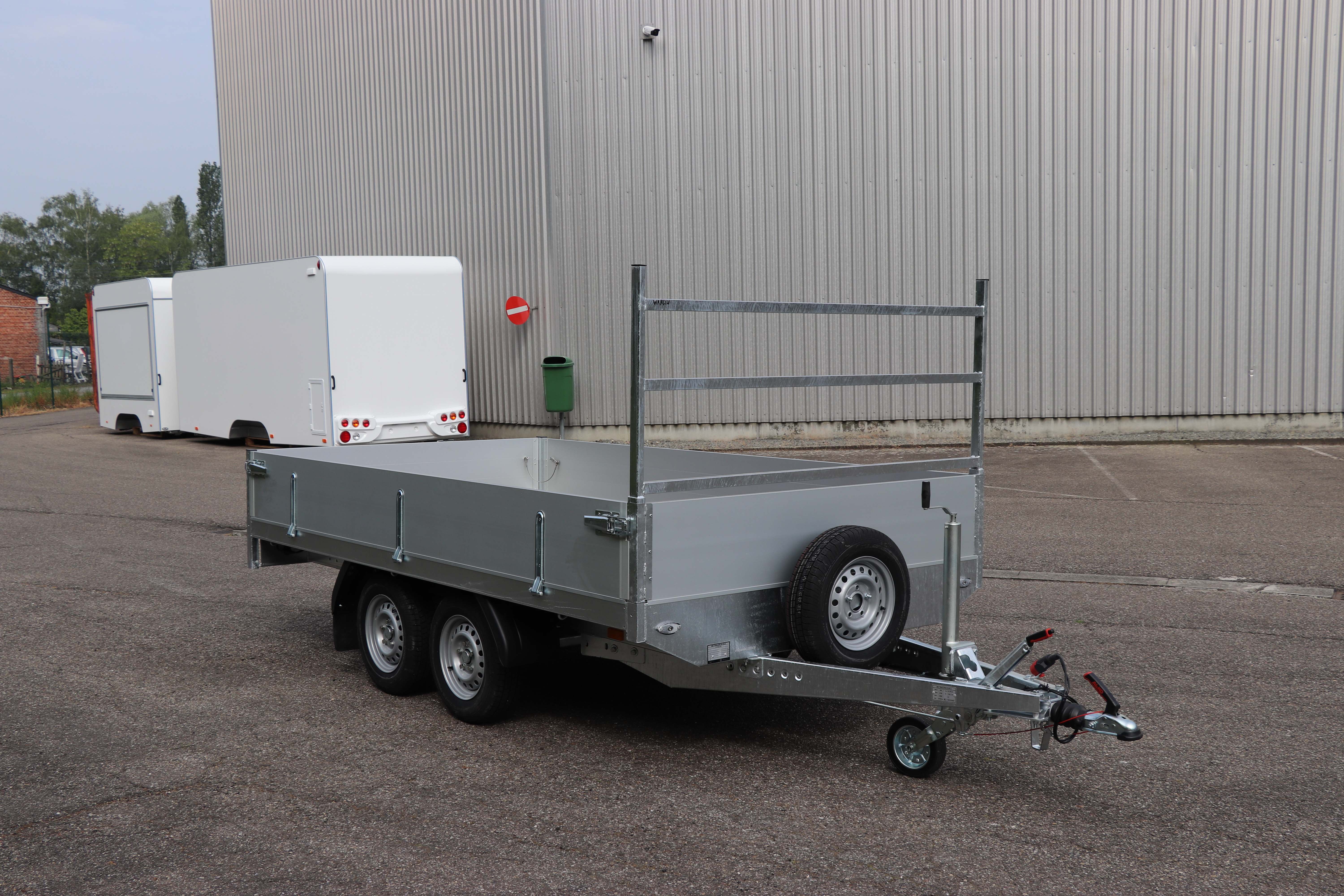 - Geremde Plateau aanhangwagen Niet Kippend Type2 Dubbel as 2700kg. Met voorziening voor oprijbruggen BW. Binnenfameting: 3000x1500x350 Buitenafmeting: 4500x1630x1690. Totaal laadvermogen: 2195kg. Tarra: 505kg. Bandenmaat 165R13c Prijs: 3140.5€+btw= 3800€.