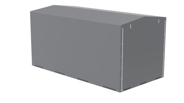 - Zeil: Grijs Vlakzeil + kader met een binnenhoogte van 1500mm (met puntdak): 528.93+btw= 640€
