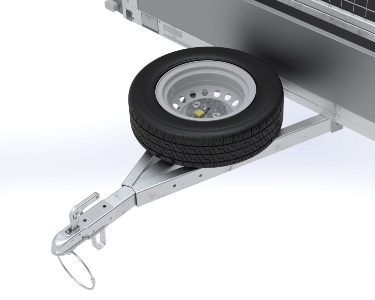 Reservewiel: Nieuw reservewiel op de dissel bevestigd met steun: 160€+btw= 193.60€