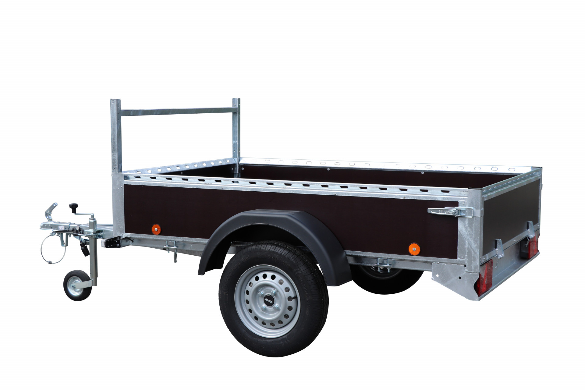 Classic - Remorque à plateau HOBBY en bois brun 250E-BR Essieu simple. Dimensions intérieures : 2540 x 1300 x 345 « 1 essieu 750 kg » Charge utile autorisée : 585 kg Poids à vide : 165 kg Dimensions des pneus 155R13 Prix promotionnel de printemps : 935 € !
