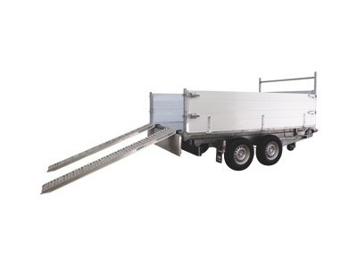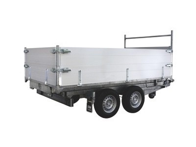 Remorque plateau « basculante » à commande manuelle, non freinée, avec roues sous le plancher de chargement 2 essieux 750kg Dimensions intérieures: 3000x1500x350 Dimensions extérieures: 4375x1500x350 Charge utile autorisée: 320kg Poids à vide: 430kg Taille des pneus 155R13 Prix: 2520,66€+TVA= 3050€.