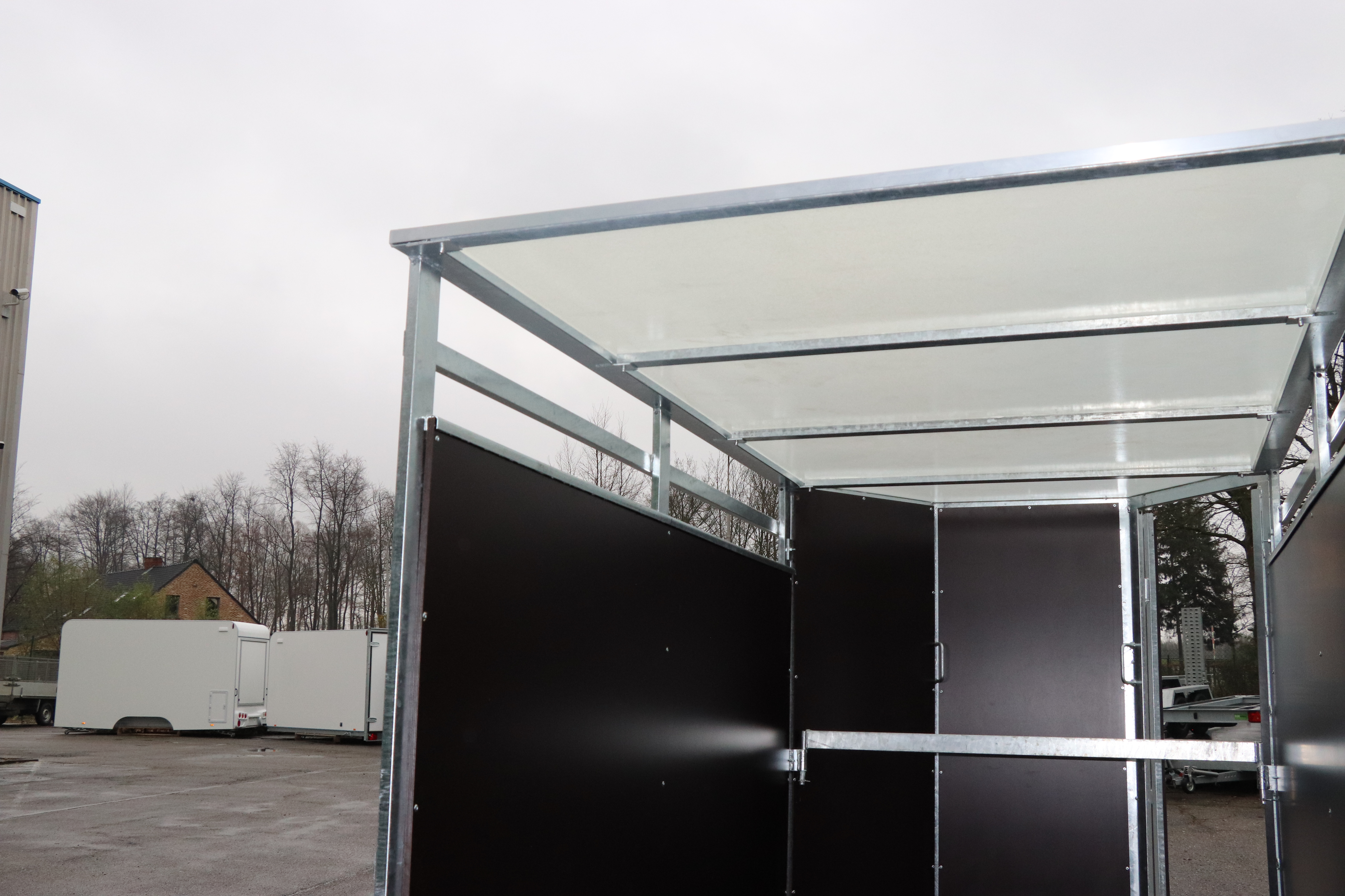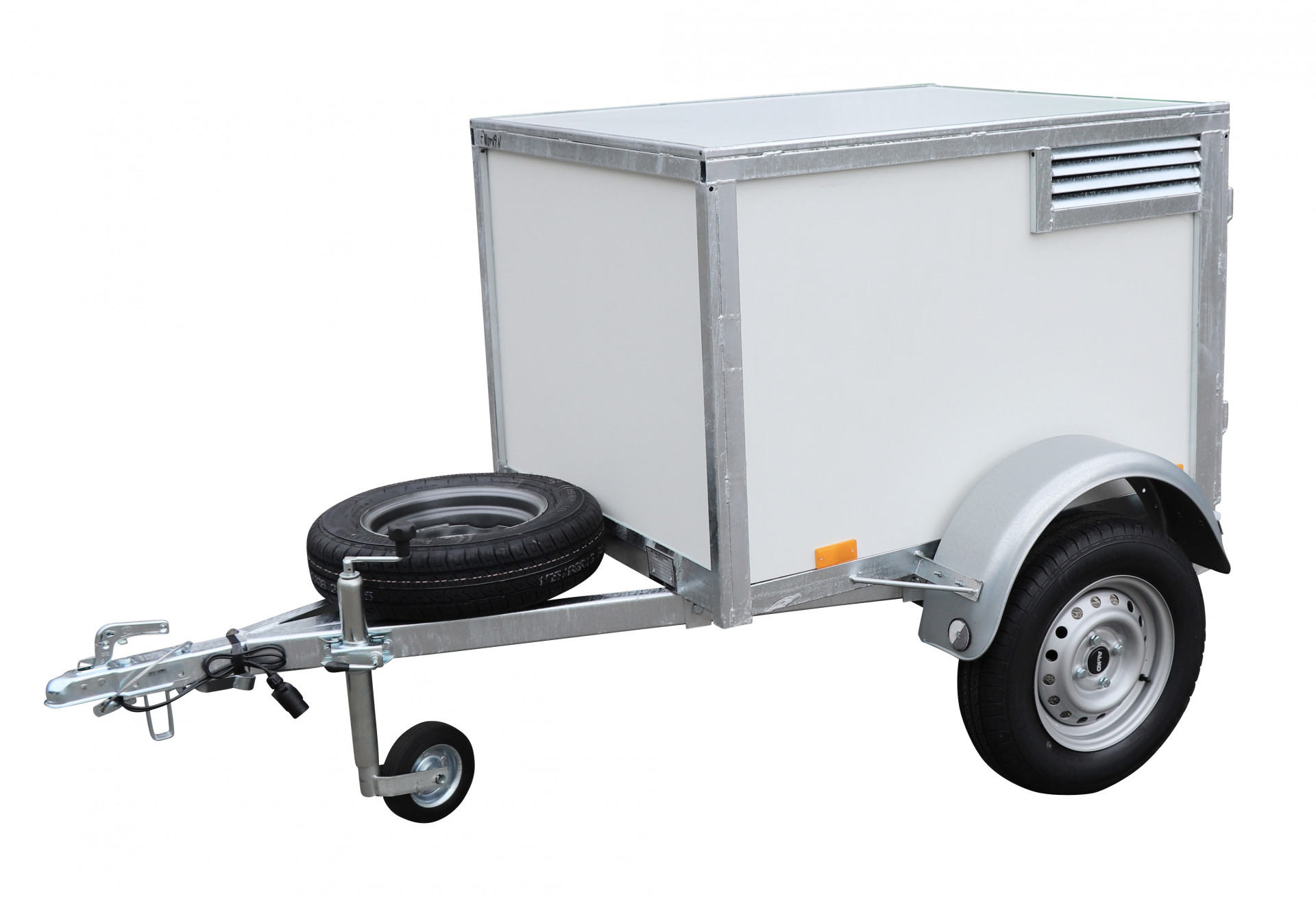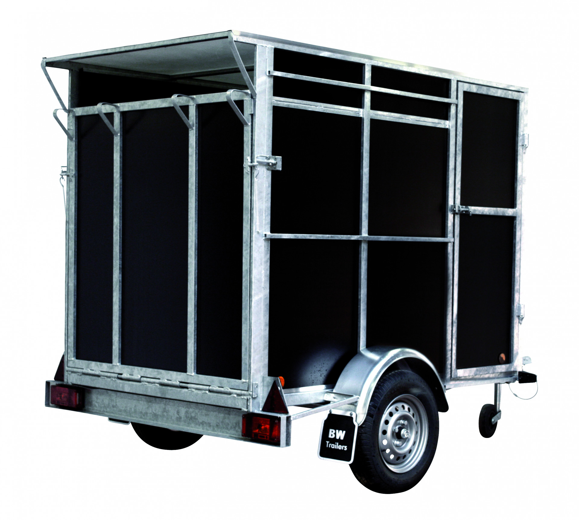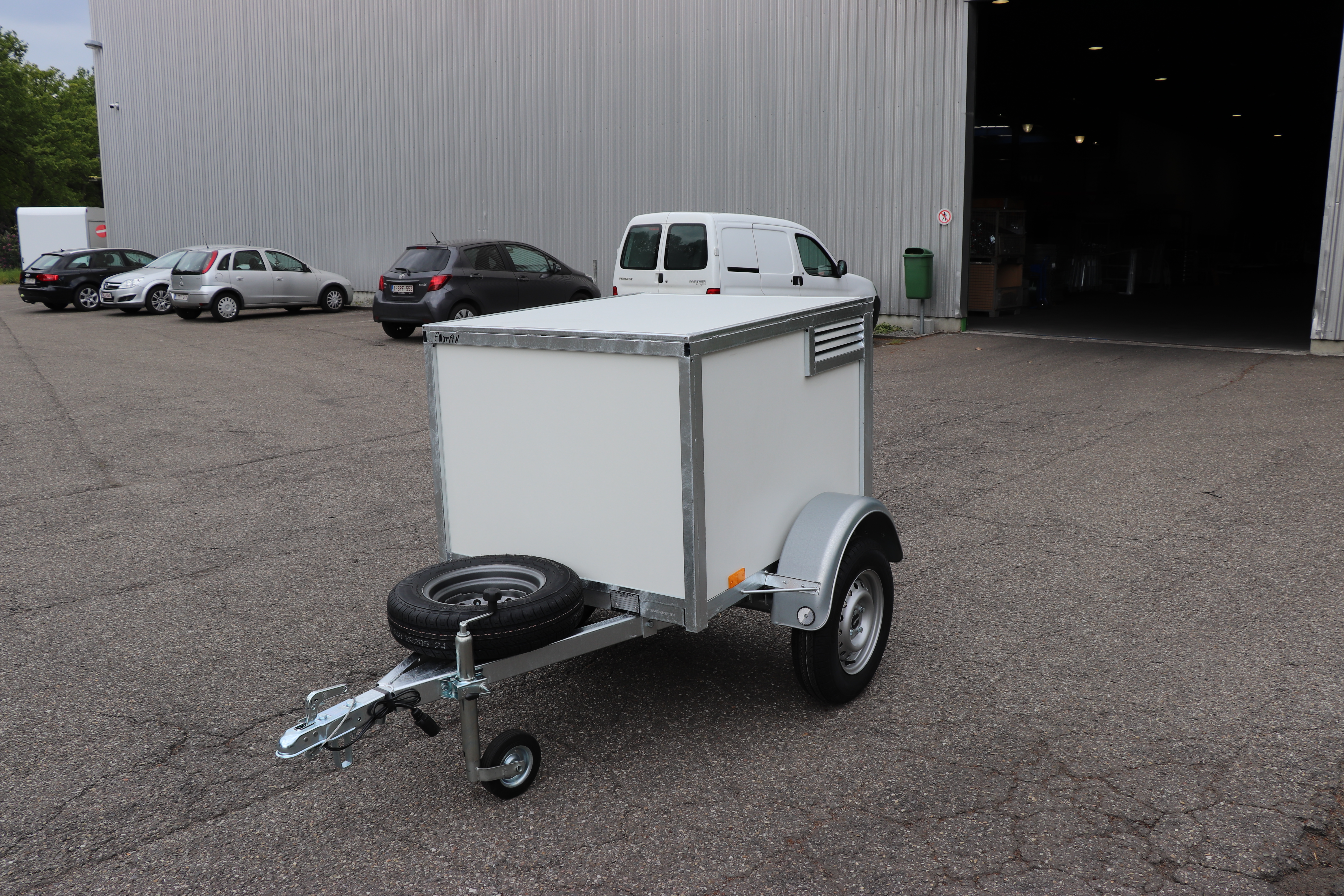 La remorque idéale pour emmener vos chiens en excursion. Divisée en compartiments séparés pouvant accueillir deux à quatre chiens. Chaque compartiment est équipé d'une grille d'aération et d'une porte intérieure verrouillable en filet métallique.