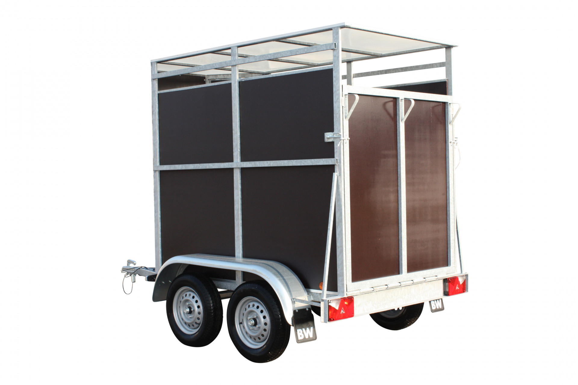 - En option pour ce modèle: petit bétail / PONY 2 essieux - remorque à double essieu: porte intérieure en filet métallique: Prix: 227,28€+TVA= 275€. Essieu freiné en option 750kg: 632,23€+TVA= 765€.