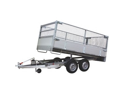 Remorque plateau « basculante » à commande manuelle, non freinée, avec roues sous le plancher de chargement 2 essieux 750kg Dimensions intérieures: 3000x1500x350 Dimensions extérieures: 4375x1500x350 Charge utile autorisée: 320kg Poids à vide: 430kg Taille des pneus 155R13 Prix: 2520,66€+TVA= 3050€.